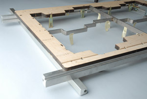 Oberer Nutzentrennrahmen mit seitlichen Niederhaltern für Bobst Quicklock Schnellspannsystem |